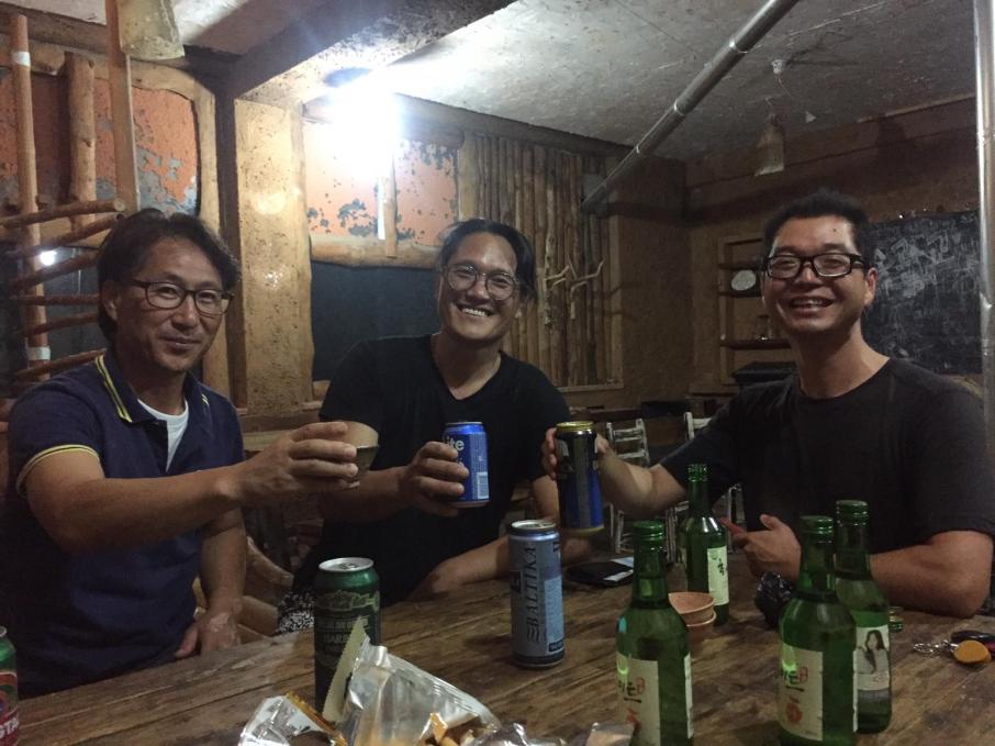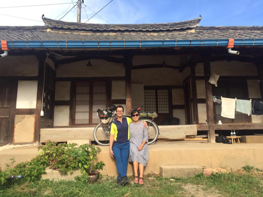 In the south of the country in the little village of Sejin-ri, straddling a small river nestled in the wooded hills, I stayed with some more Warmshowers hosts. Mook and Ahgie, are a forty-year-old couple who moved from the city of Busan to Sejin-ri for a more peaceful life in the countryside, working at a wetland centre. They lived in one of the few traditional Korean houses in the village, it was so simple and beautiful, I felt instantly relaxed there as soon as I arrived. There was that Japanese and Korean style of architecture, half inside and outside, making you feel so much more connected to nature. We ate dinner together sat on a wooden floor covered with a tatami straw mat, accompanied by the evening cacophony of insects. We talked about their travel experiences cycling in countries like Turkey, Scotland, England and Europe. On my second night there we went out to a restaurant with some of their friends, two of them were potters which is much more of an art-form in Asian culture. They make wares such as traditional elegant tea sets. They were cousins who lived together in a large building that used to be a primary school. It’s where we went after our game of pool to drink beer, listen to one of them play guitar and sing Korean songs while the other made some Korean pancakes of onion, egg and flour fried in oil.