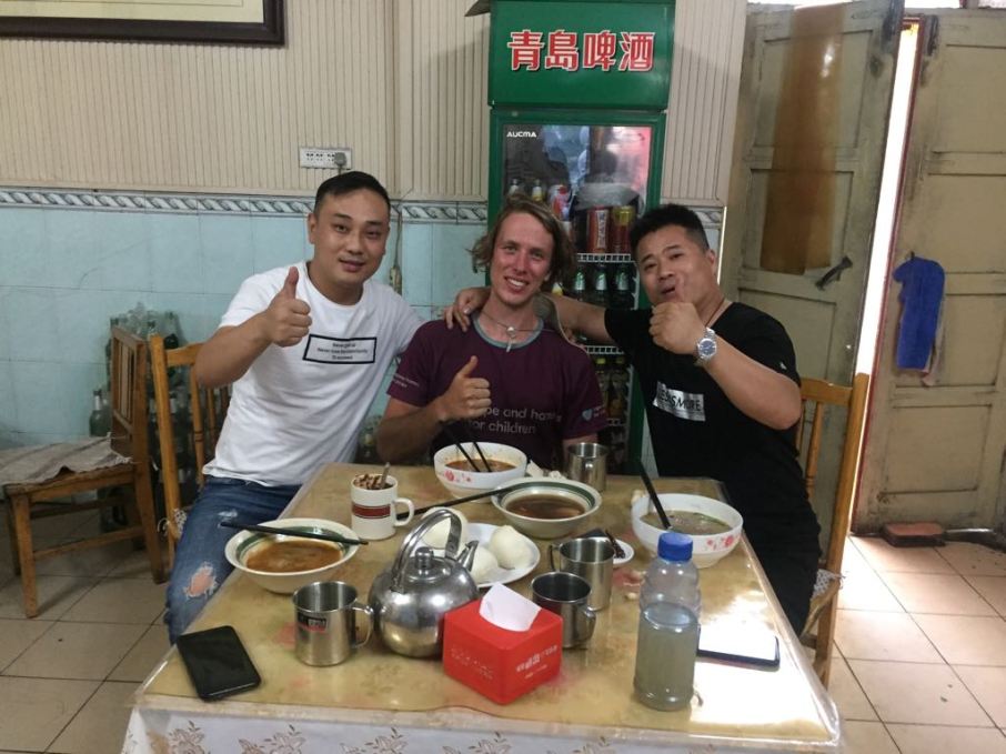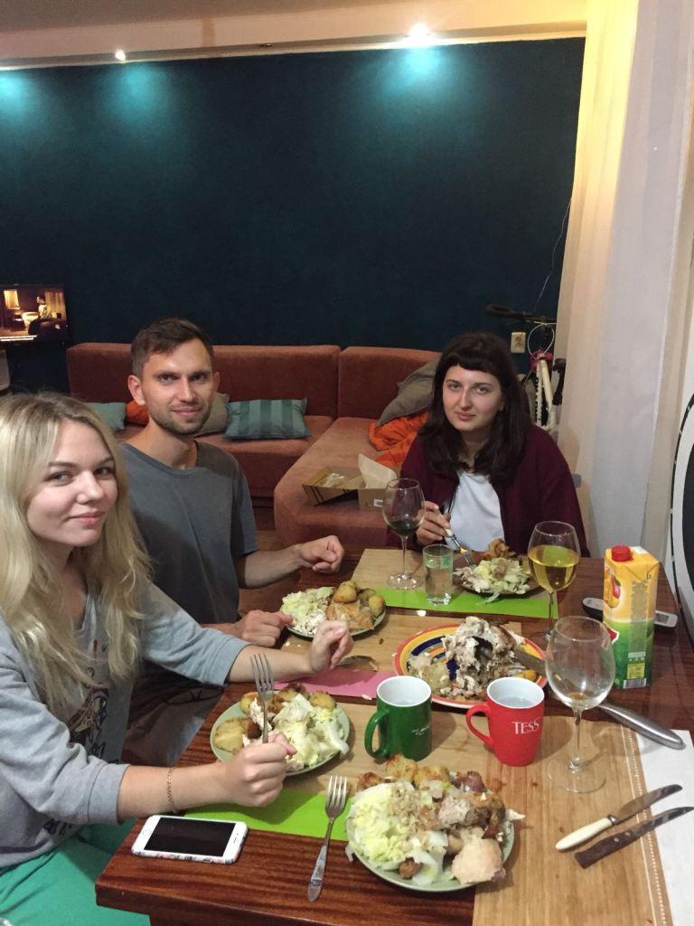 My host,Kuban on the border, trying to teach me Backgammon… in Russian